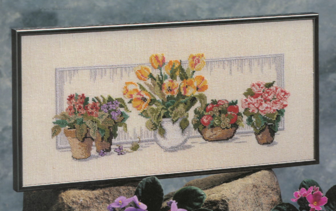 Broderikit af vindueskarm med blomster
